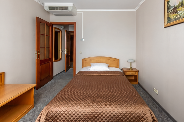Элегантный классический номер, выполненный в лучших традициях европейских гостиниц, успешно сочетает в себе домашний уют и лаконичность делового интерьера.