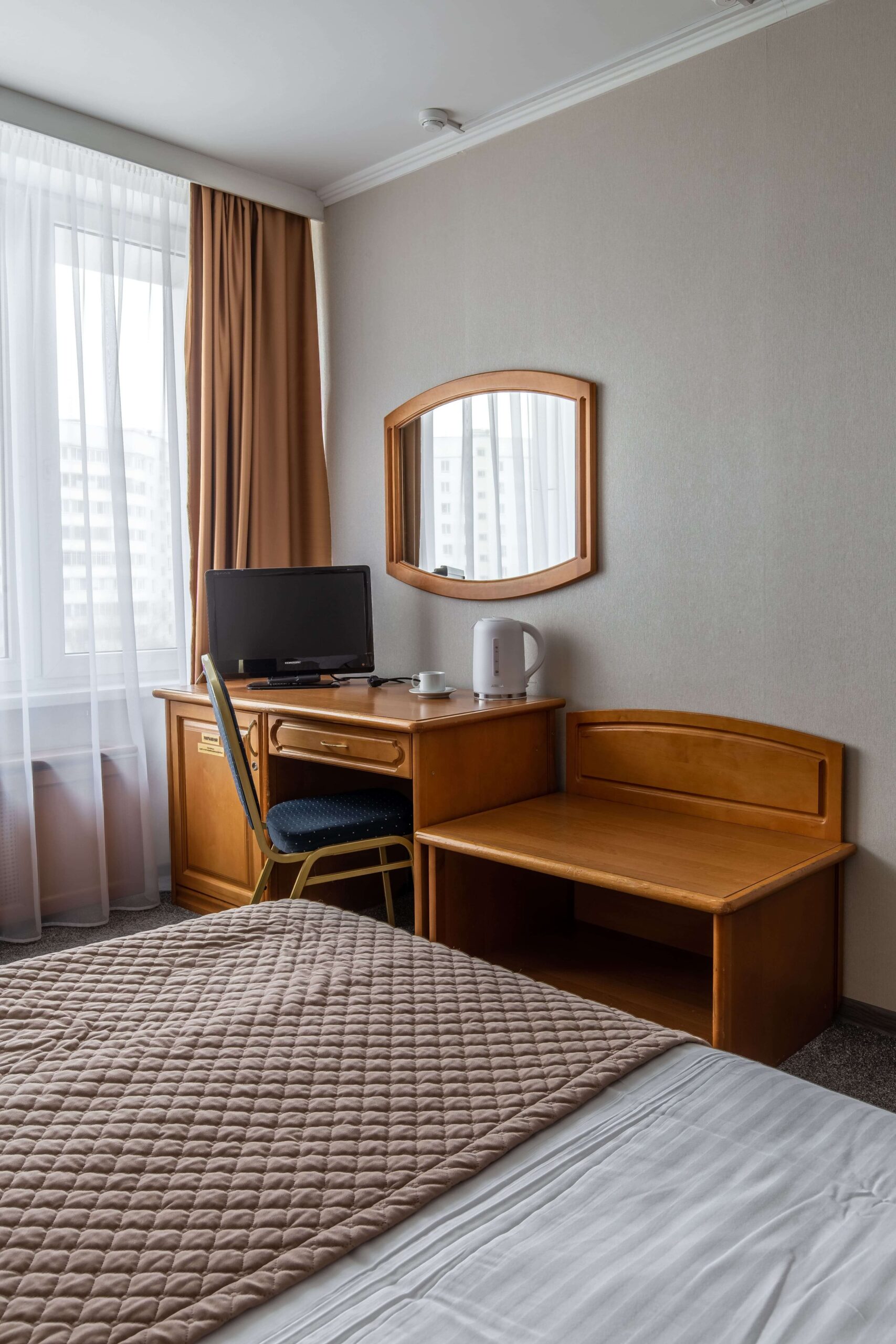 Однокомнатный гостиничный номер, площадью 16 кв. м, предназначен для размещения одного человека на полуторной кровати (размер спального места 120х200). Номер оборудован шкафом для одежды, письменным столом, прикроватной тумбочкой, телевизором, мини-холодильником, кондиционером, телефоном. В ванной комнате имеется душевая кабина или ванна, набор полотенец, фен, гигиенические принадлежности. Для удобства работает бесплатный Wi-Fi.