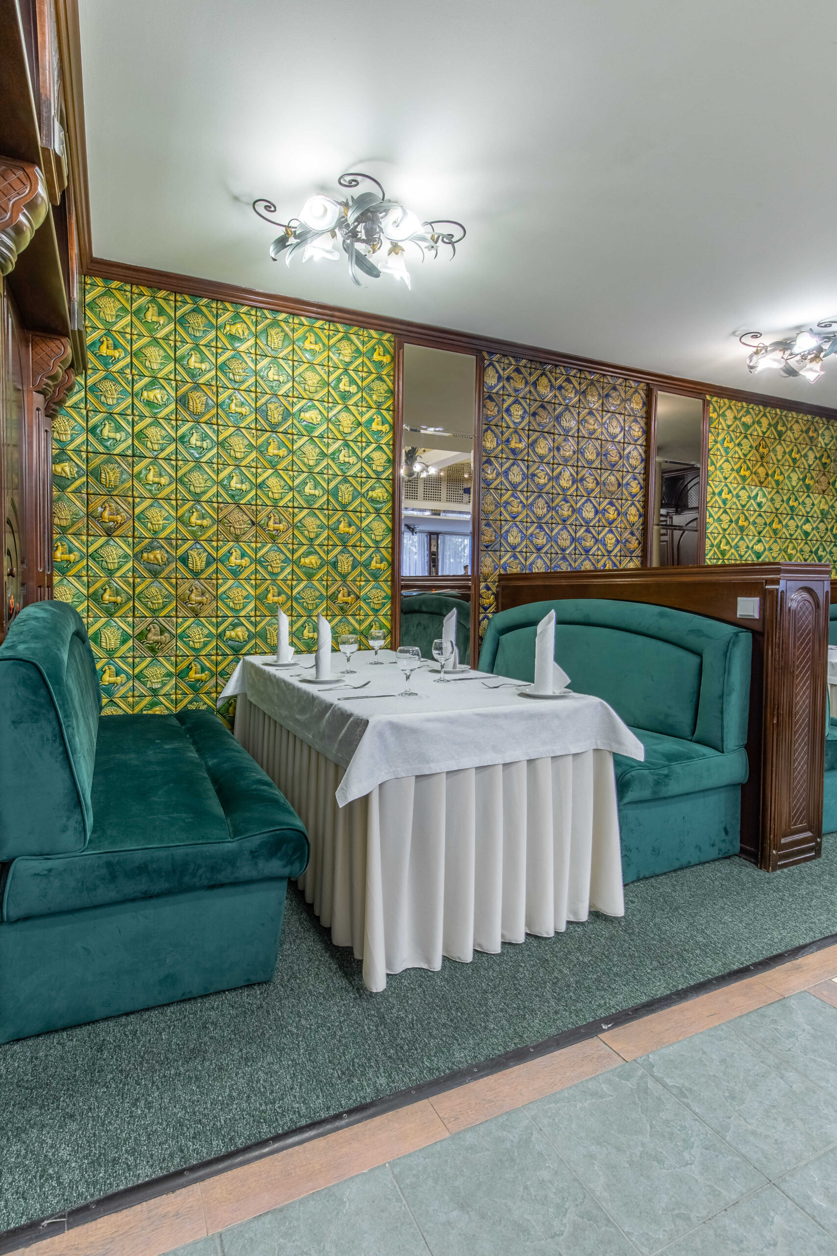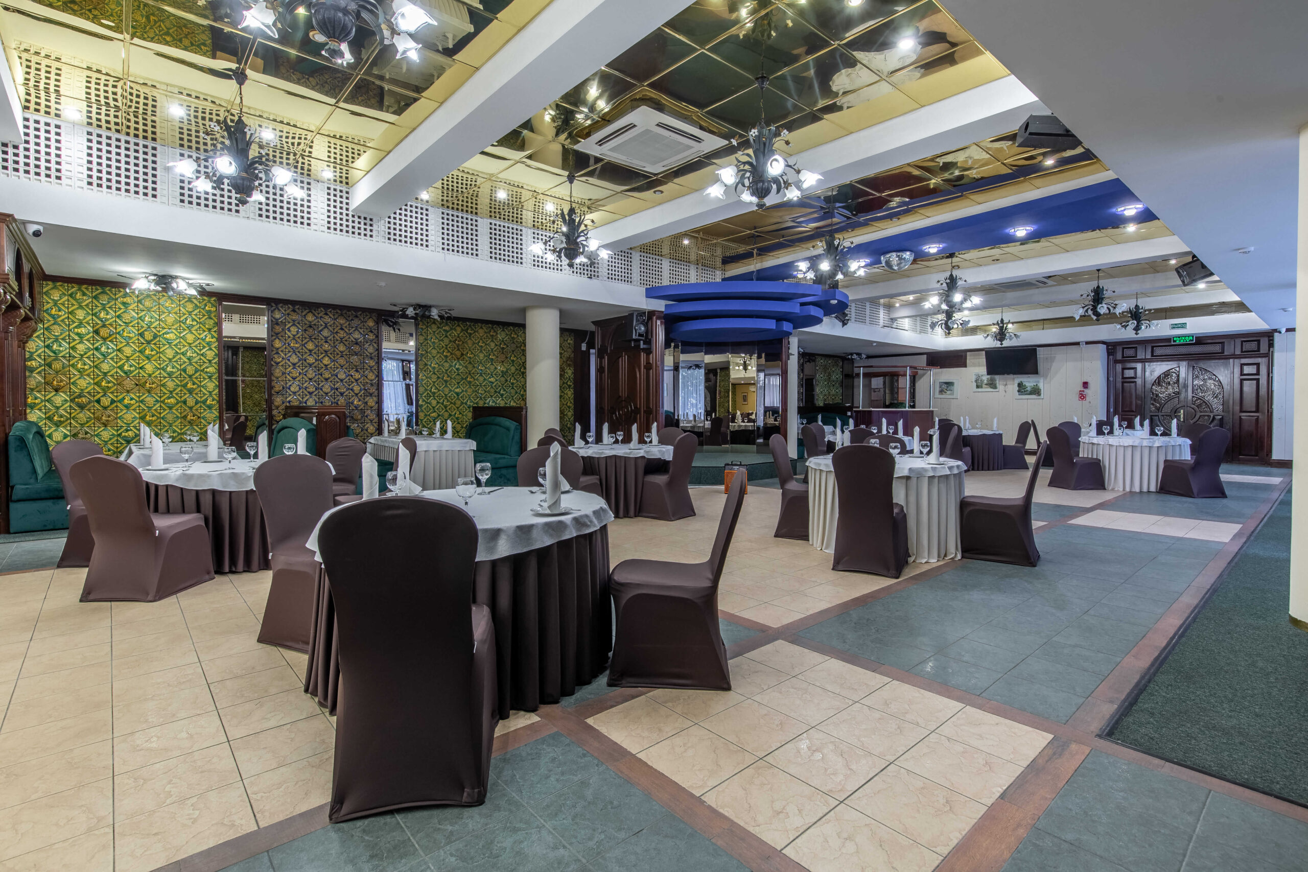 Расположенный на втором этаже гостиницы зеленый зал, оформленный в ненавязчивом классическом стиле, прекрасно подойдет для любых мероприятий – будь то деловая встреча или шумный семейный праздник.